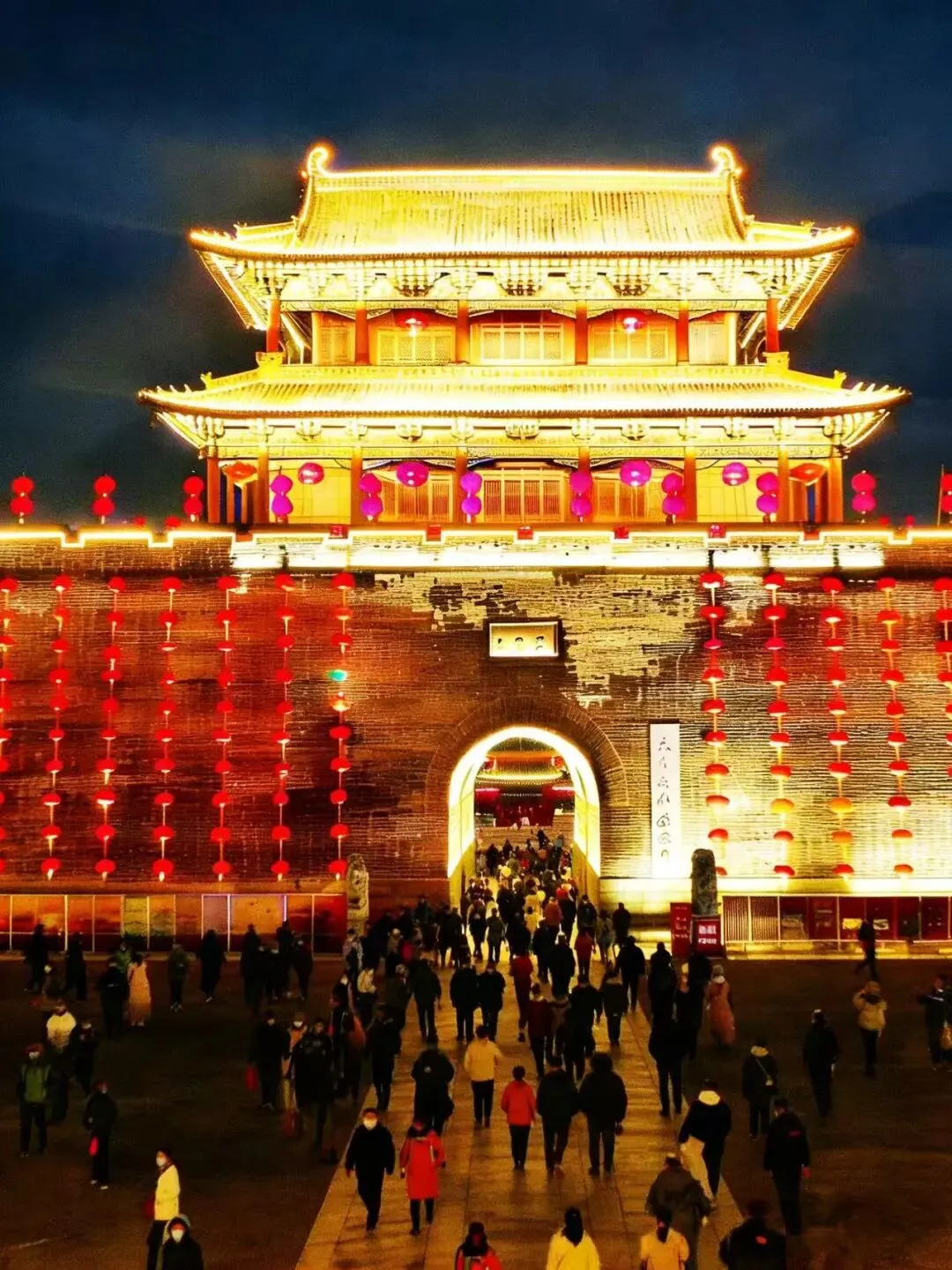 当白日的喧嚣褪去,夜幕降临,河东池盐文化博览园便换上了另一副绝美的容颜。如果说白天的庙会是热闹的序曲,那么夜晚的博览园,才是春节真正的高潮!