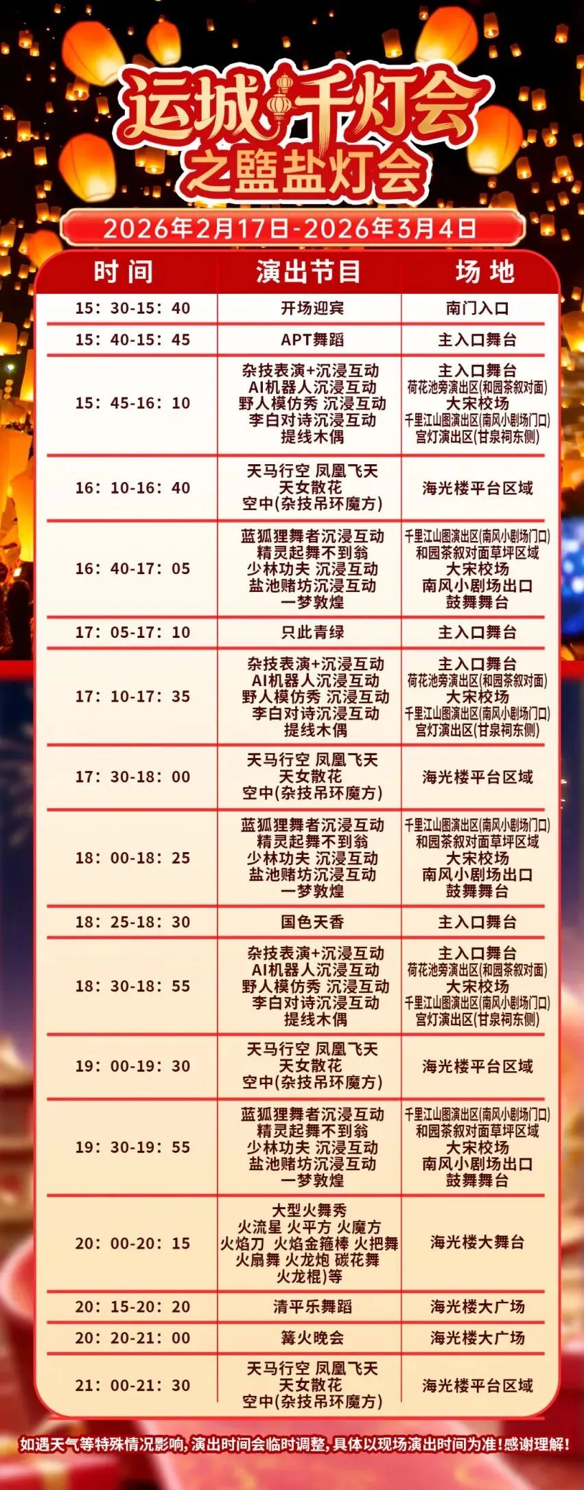 活动太丰富,生怕错过精彩瞬间?建议大家提前预览灯会节目单,合理规划时间。无论是震撼的空中杂技,还是唯美的天女散花,每一个节目都不容错过。