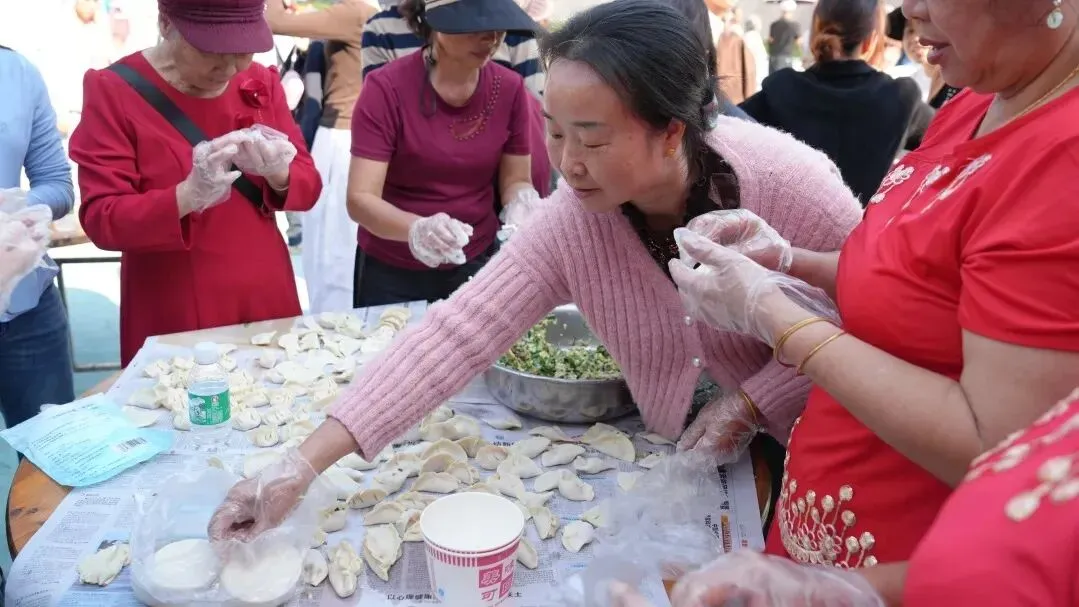拔河赛旁,张灯结彩的游园会早已热闹开锣。孩子们踮脚试弓“射福”,老人们蒙眼敲锣博得好彩头,套圈区不时爆发出阵阵喝彩。最暖心的当属包饺子区——汉族大妈手把手教傣族姑娘捏褶子,哈尼阿婆把自家调的蘸水分享给拉祜族邻居。当热气腾腾的饺子出锅,咬开的是鲜香,品出的是团圆。“我们把‘百家福’都包进同一张面皮里啦!”一位参与活动的居民笑着举起手中的饺子,阳光透过薄薄的皮儿,映出幸福的模样。