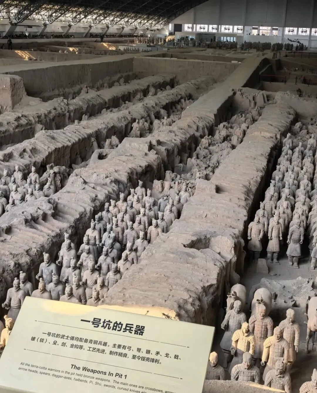 最动人的,是千人千面、无一雷同的匠心。从将军俑的威严持重,到士兵俑的坚毅果敢,从发丝纹路、铠甲甲片到指尖细节,每一尊陶俑都栩栩如生,连胡须、眉眼、表情都各具神韵。这不是冰冷的陶土雕塑,而是无数先秦工匠以心血浇筑的生命群像,是中国古代写实雕塑的巅峰之作。出土的青铜兵器历经千年依旧寒光凛冽,冶金工艺、铸造技术至今令人惊叹,藏着大秦科技与工艺的文明密码。