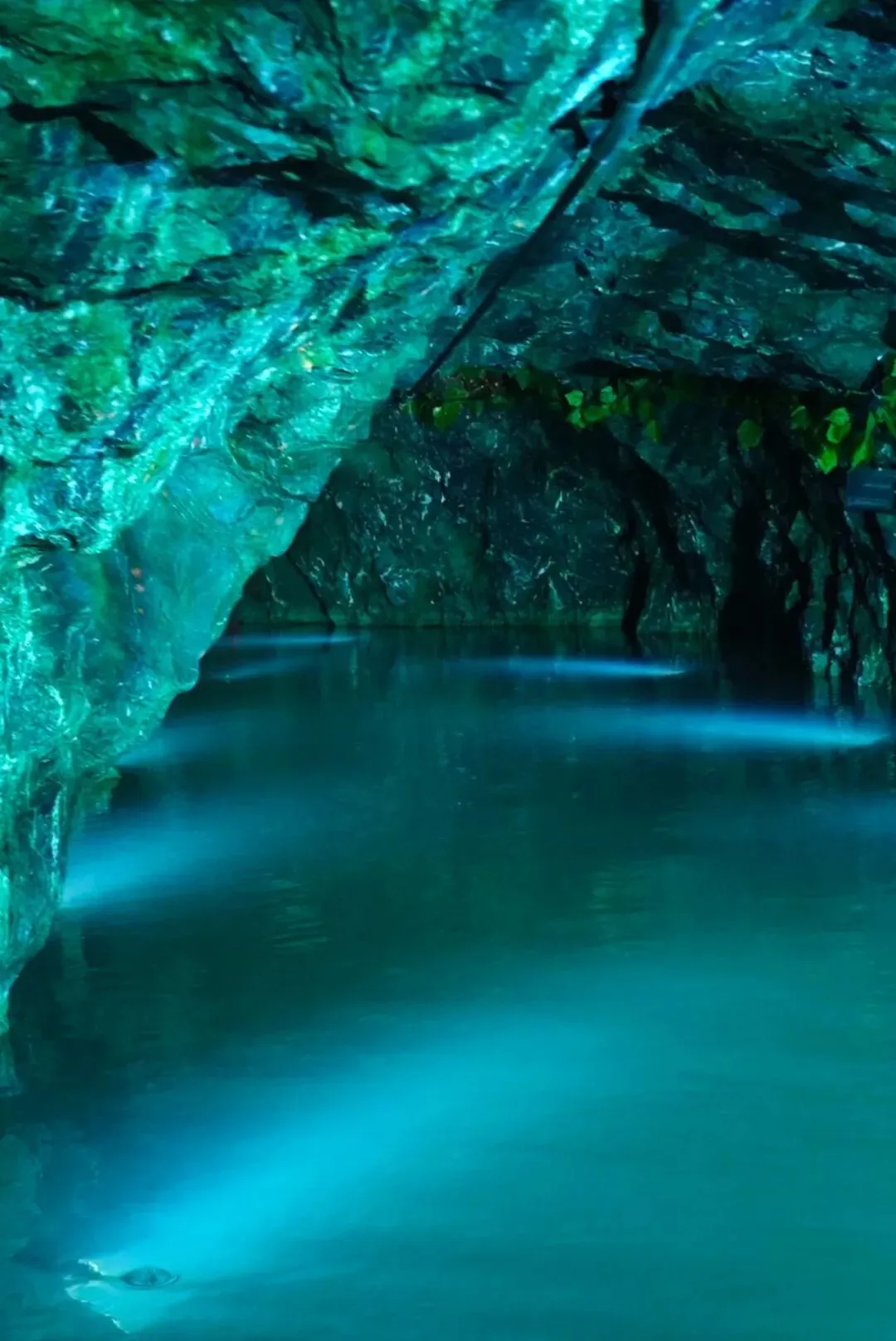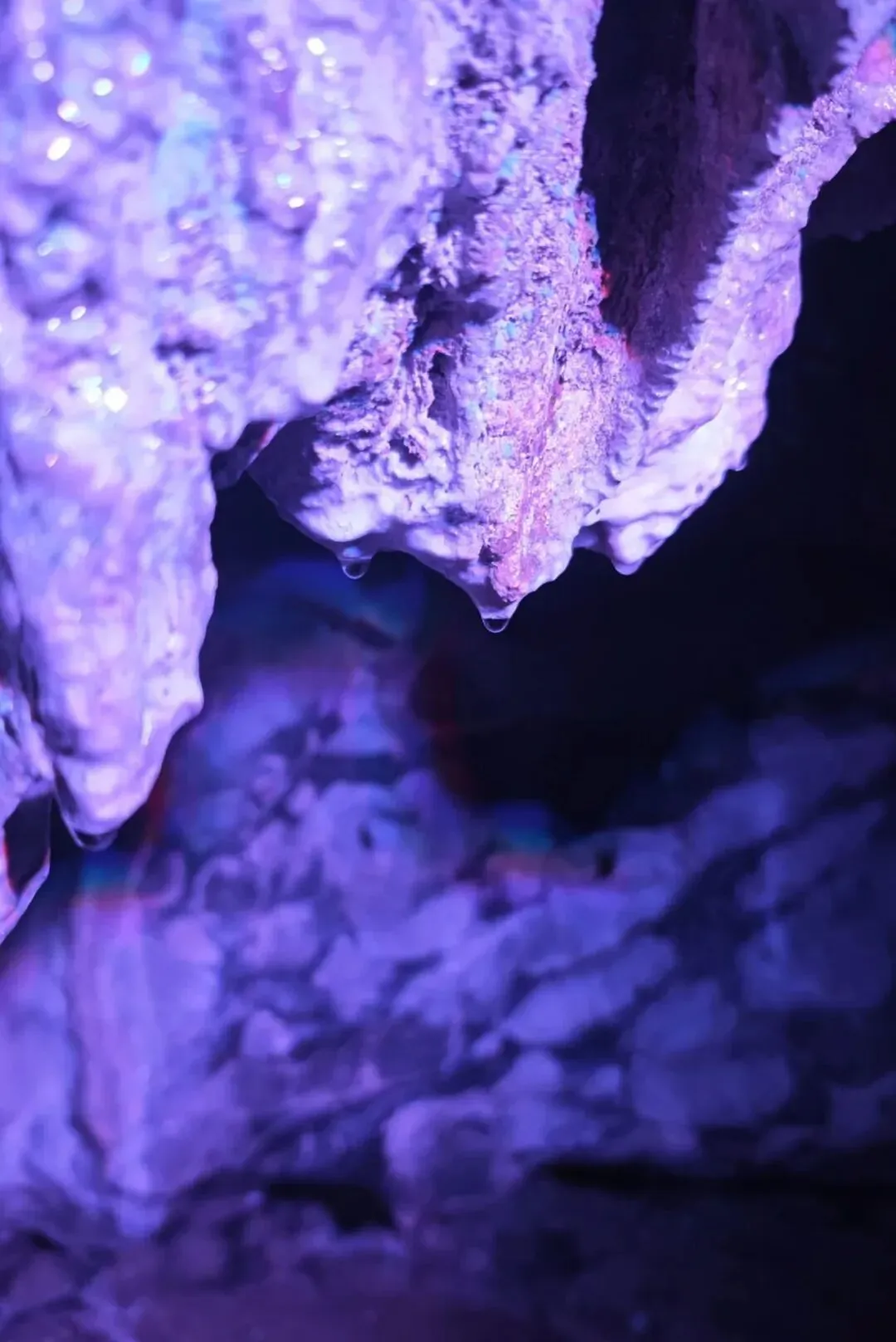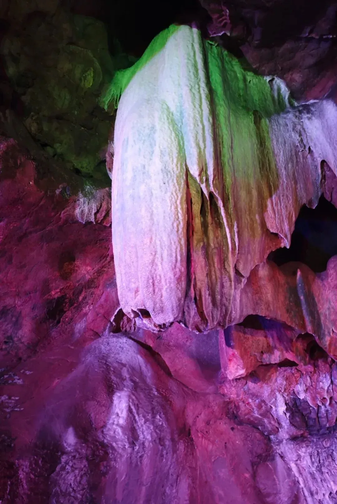 继续往前走,就能看到一个王安石的雕像,矗立在两排树木中间,与青山绿水相伴。 在进洞的门口有一个船票售卖的地方,每个人是十元。售卖员说如果不坐船可以不买。 但是这个入口如果不买票似乎没法进入到华阳洞里面,因为入口不远处就是暗渠,这条暗渠其实很短,中间就有一只船在这里摆渡,来回也不会超过十分钟。 华阳洞里倒是很特别,有很多很有意思的造型,在灯光映照下,水滴也成了彩色的。 这是典型的喀斯特溶洞,发育了钟乳石、石笋、石花、石柱以及石瀑等天然岩溶形态。 景区为这些形态还赋予了专属的名称,根据这些形态特性和现实中一些人物故事或者其他相结合,如金龟探海、美人鱼,珊瑚灿烂等等。 这个溶洞时而宽时而窄,有的地方甚至都需要弯腰才可以过,原以为眼前就是尽头,没想到过了这片石头,又有了新景。 据说华阳洞全长有五千多米,但目前对外开放的只有 1600 米,包含了天洞、碑洞、地洞以及地下暗河。