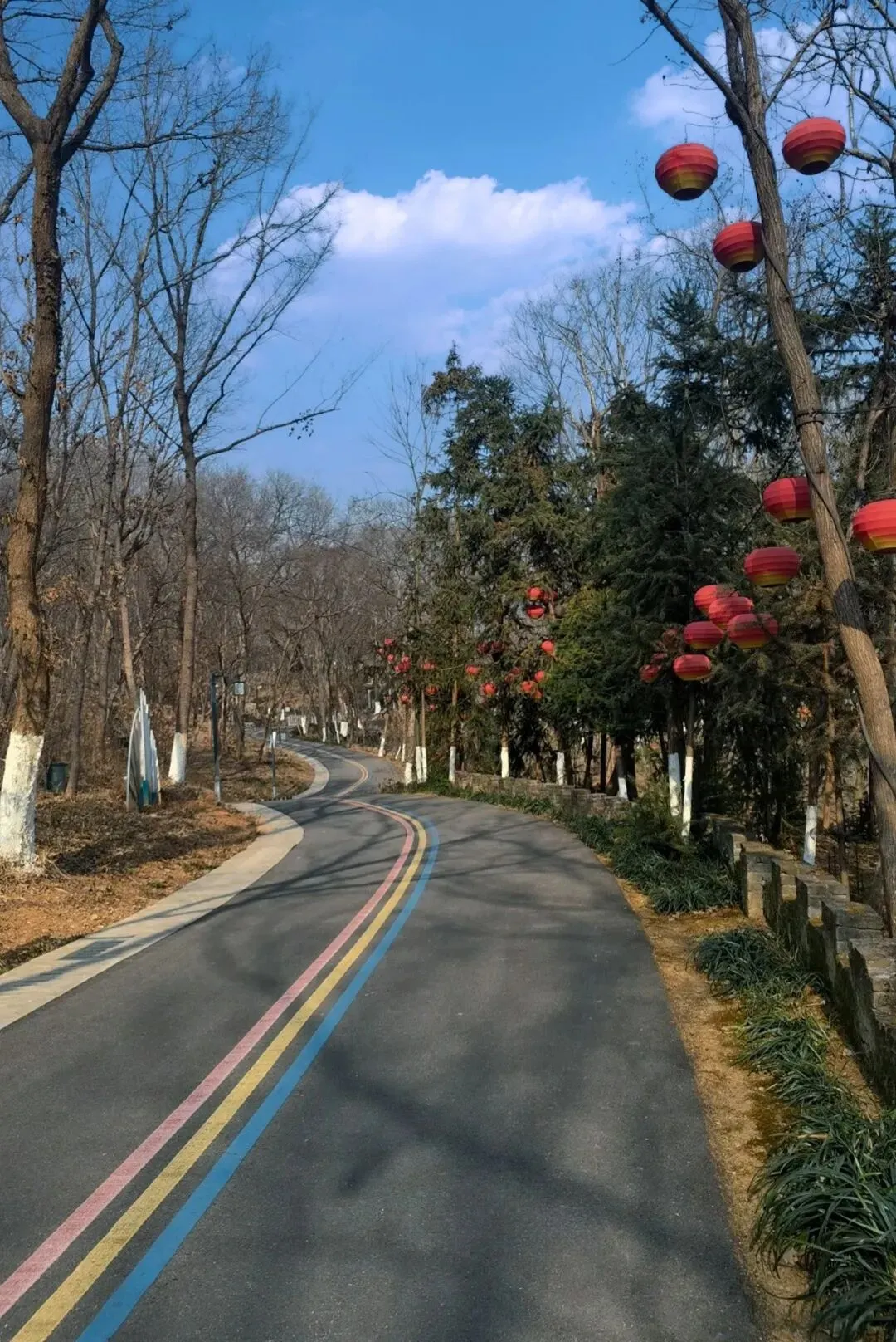 没有谁是孤岛,每个人都是一片世界,向美而生!昨天给大家介绍了限时免费的太湖山国家森林公园《芜湖周边限时免费!山水+千年古寺,这波羊毛不薅亏大了!》,今天就给大家推荐另外一处。 这一处便是褒禅山,它位于马鞍山市含山县环峰镇褒山行政村,东临和县鸡笼山,西至古昭关,总面积约20平方公里,主峰海拔481米。 褒禅山最主要的两个游览地,一个是褒禅寺和华阳洞,这个洞在平时成人票就要 50元/人,但是现在免门票,免费时期从即日起截止到3月31日。 刚到褒禅山的时候,我很是惊讶的是这里的停车场,它的停车场是在树林间,每个车位两边都是树,也是迄今为止我见到的第一个这样的停车场。 从这个停车场出来,一直向华阳洞的方向走去,这路边布满了新春的喜庆,新春游园会的各种装饰和市集摊位,已经一字排开。 离进华阳洞不远的地方,还有一片梅花林,现在已经开满梅花,宛如一颗颗红色的繁星一般,点缀着这里。 这里需要说明的是华阳洞每天大概四点以后就不给进入了,所以,如果你是要去那里游玩,一定要提前掌握好时间。