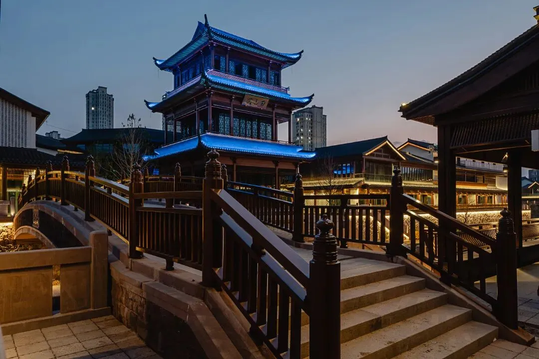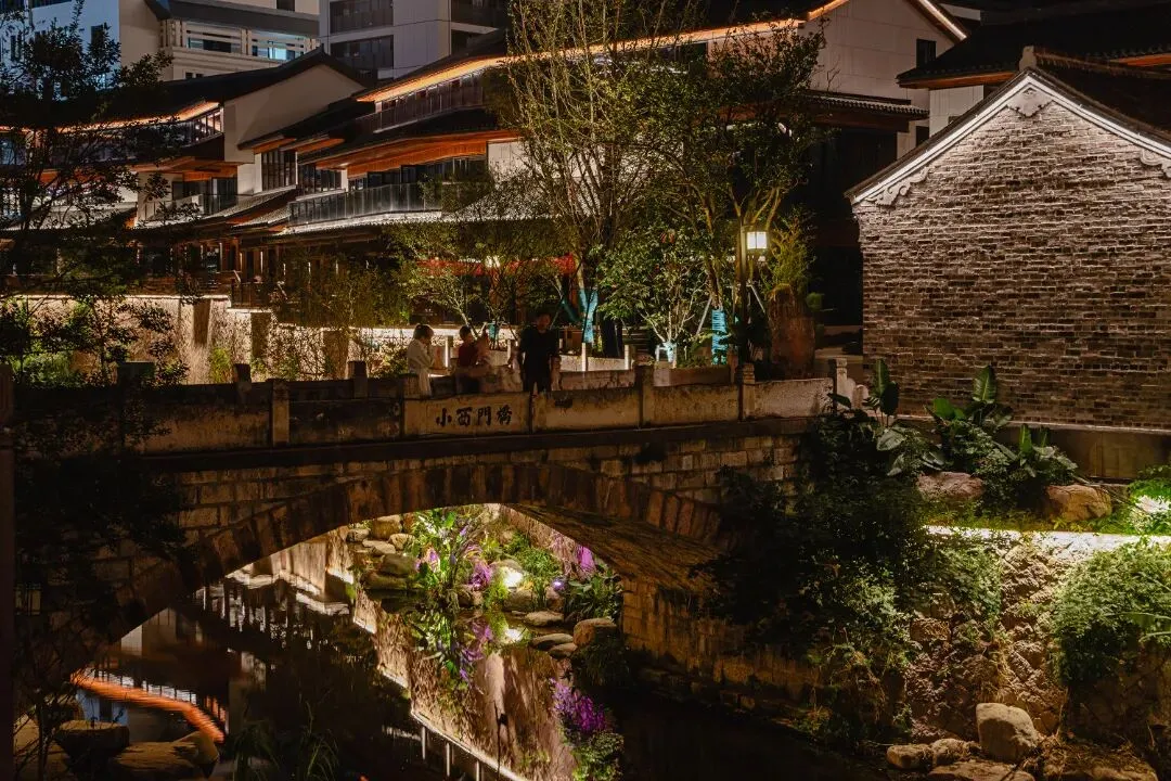 赭溪自古以清、秀出名,溪床赭赭,流水碧碧,两岸绿田青树,农舍雅阁,风光旖旎。赭溪老街项目灯光艺术勾勒出唐宋古街的夜间盛景。二十四节气广场、金举人宅、问道桥,一处处景观或新建,或恢复,或修缮。茶香、书香、酒香、咖啡香,既萦绕城市烟火气,又处处透着“潮”气息。焕新一条老街,激活一座古城。