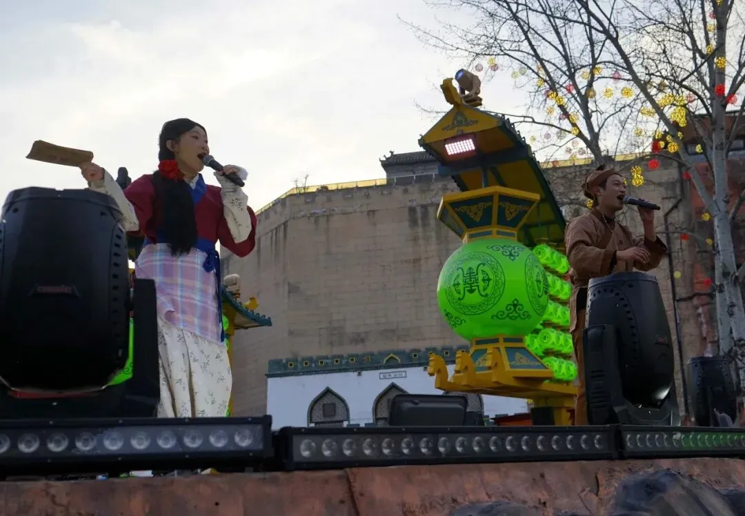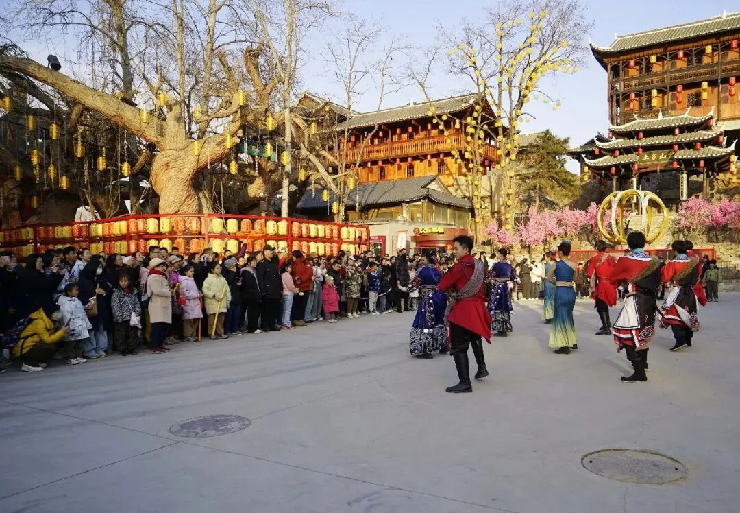 其次,在拍照观景的同时,沿途就能欣赏各类文艺演出。景区设有十余个表演点位,还有行进式演艺,形式丰富多样:开园迎宾、送福大巡游、小丑互动、热情奔放的民族歌舞,热闹又喜庆。