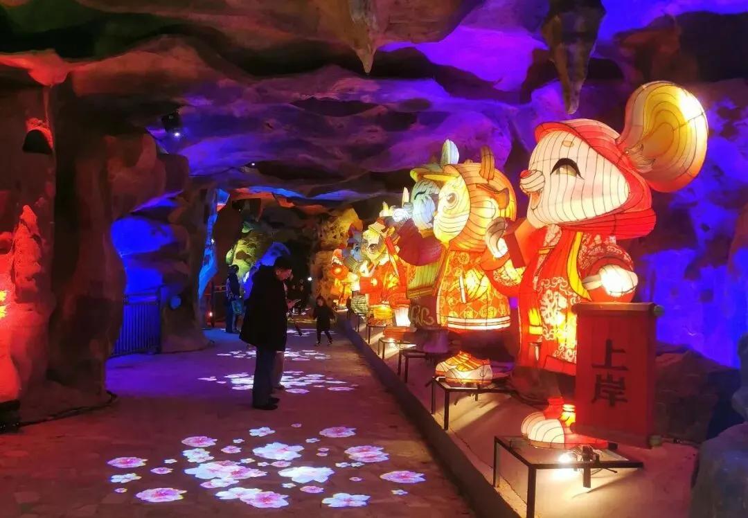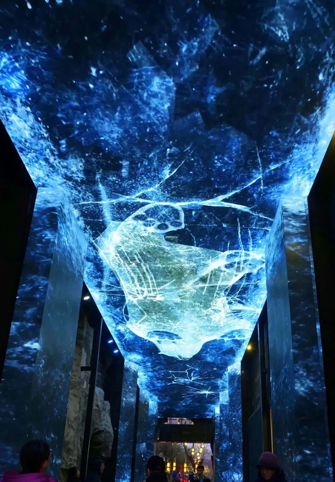 借助激光等科技打造的灯光装置秀,也是不容错过的核心看点。园区内的一线天、大小溶洞、回族窑洞等四处场景,光影动态变幻,沉浸式体验感拉满,是夜游必打卡之处。