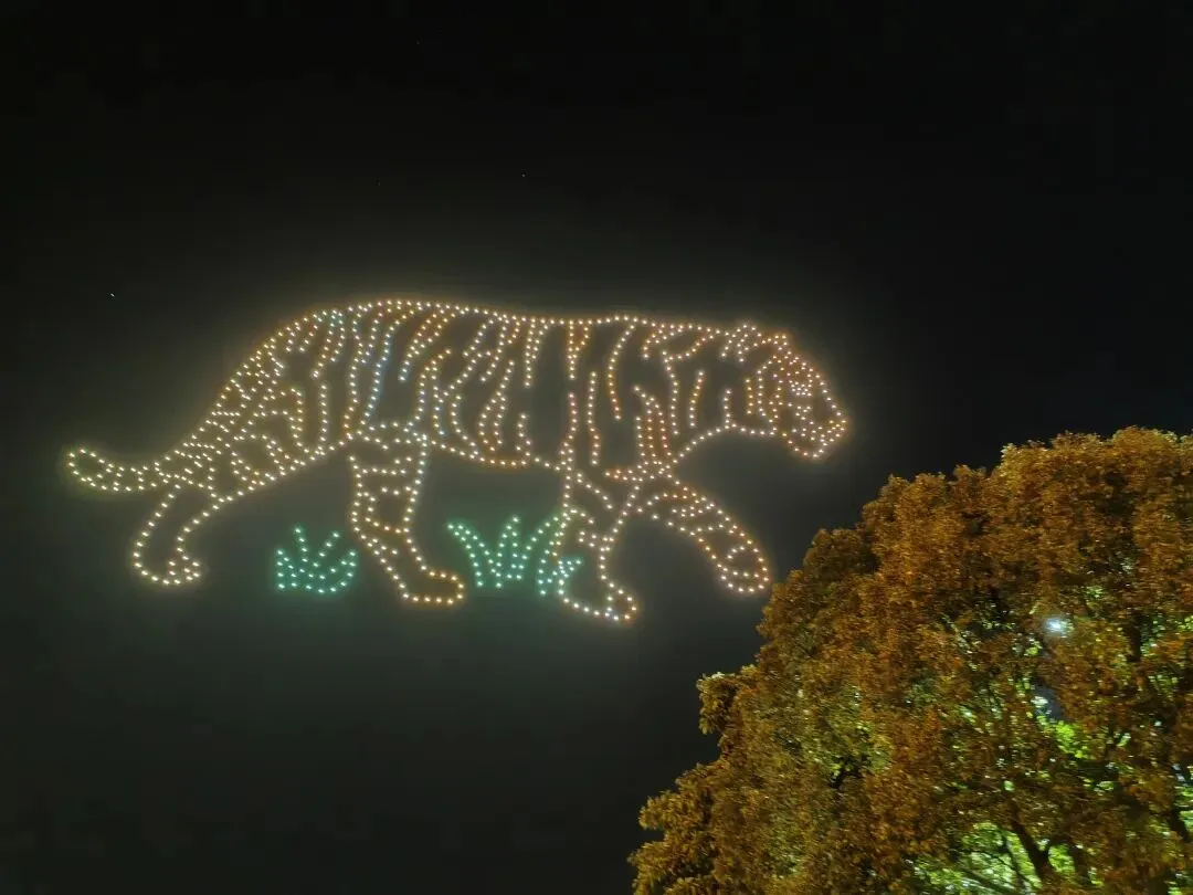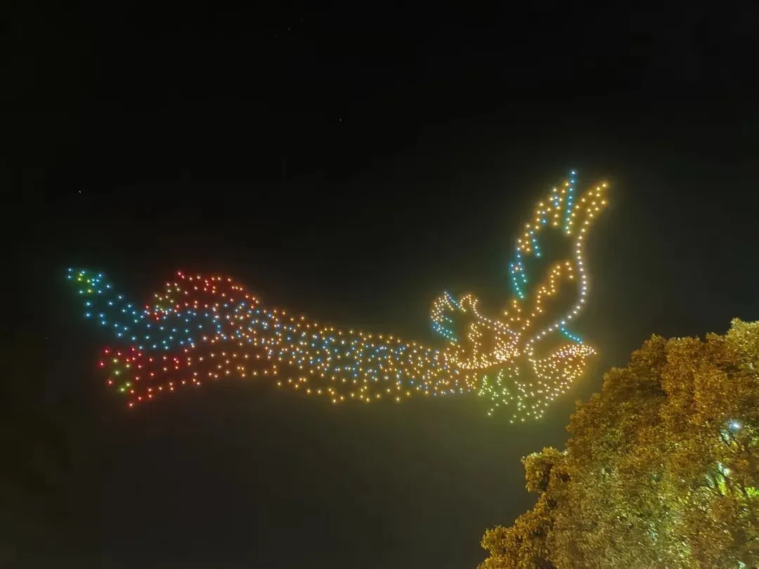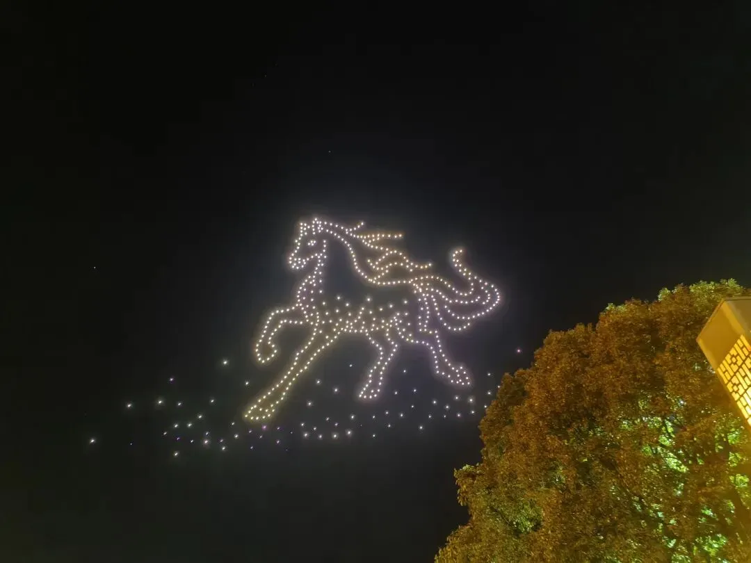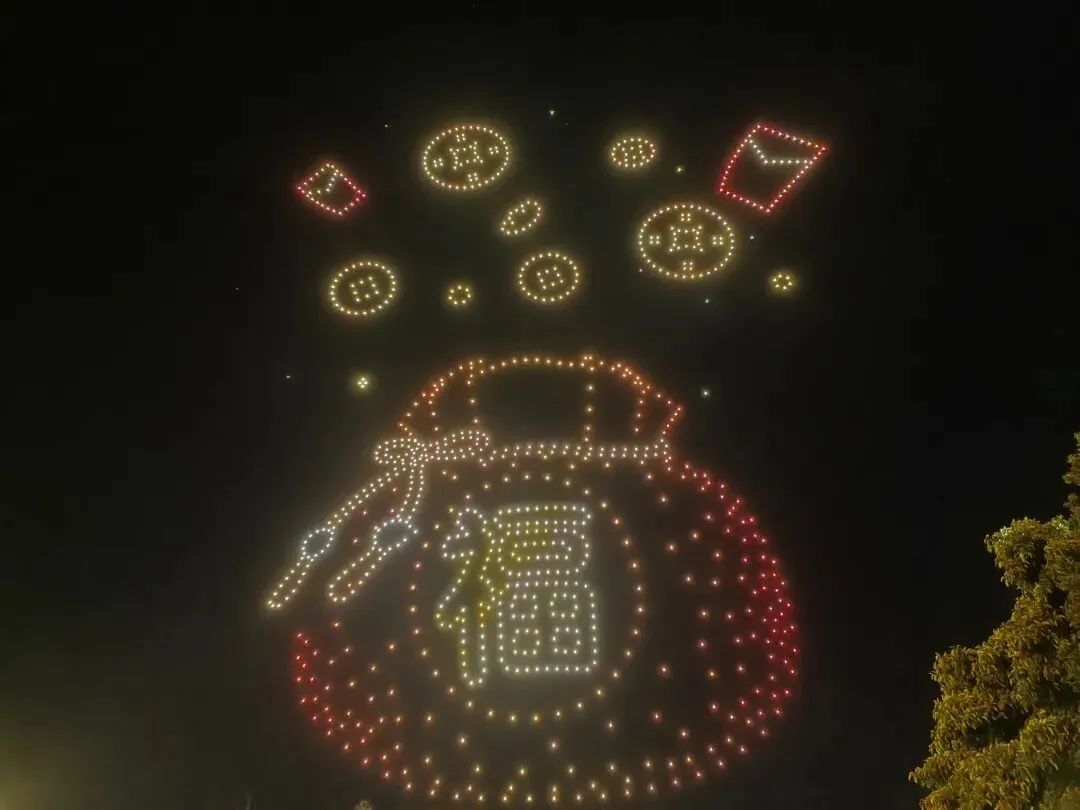随着约会活动的启幕,千架无人机闪烁着彩灯缓缓升空。无人机以夜空为巨幕、以科技为画笔,在精准的编程控制下变换出“福马奔腾”“龙凤呈祥”及新春祝福图案等立体造型,将上杭本土文化符号与现代科技光影融合,引得现场观众阵阵惊呼。