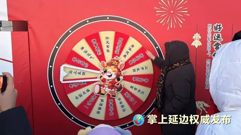 2月18日,在地处中俄朝三国交界的珲春市防川景区龙虎阁上,来自各地的游客眺望远方。为了让游客在防川景区度过一个充满欢乐的新年,春节期间,防川景区推出了民俗表演、新春打卡等一系列特色活动,以丰富的文旅体验,让游客全方位感受传统文化的魅力。在龙虎阁祈愿后,游客王艳还参与了幸运转盘等活动,她表示,能在“一眼望三国”的防川景区寄托美好期盼,让这个春节很有仪式感。