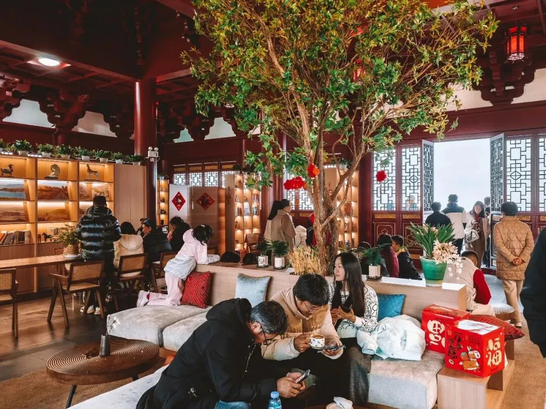 宁时光·客厅、宁时光·零碳空间、深海奇遇VR馆迎来游客潮,四处点缀的新年装饰让清冷的下午充满了和煦的过年暖意。