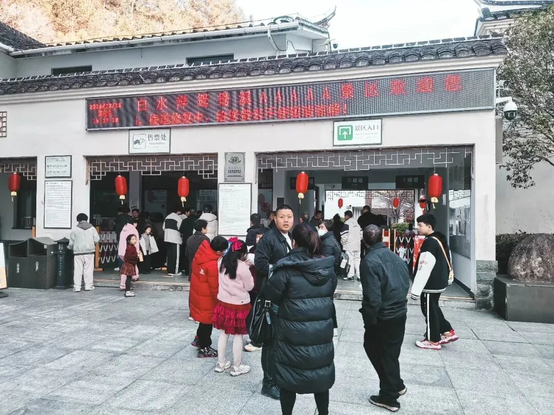 白水洋·鸳鸯溪景区迎来大批游客,景区内人头攒动。充满年味的装饰给景区增添了一份暖意,景区内其乐融融,游客们都表示非常亲切!