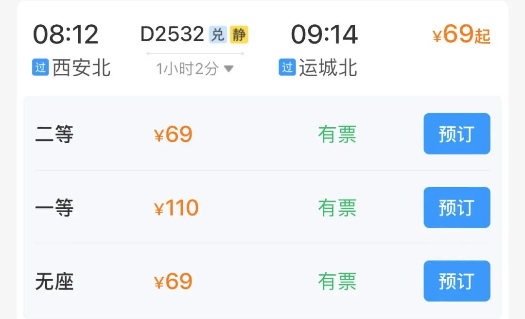 参考票价:二等座69元
