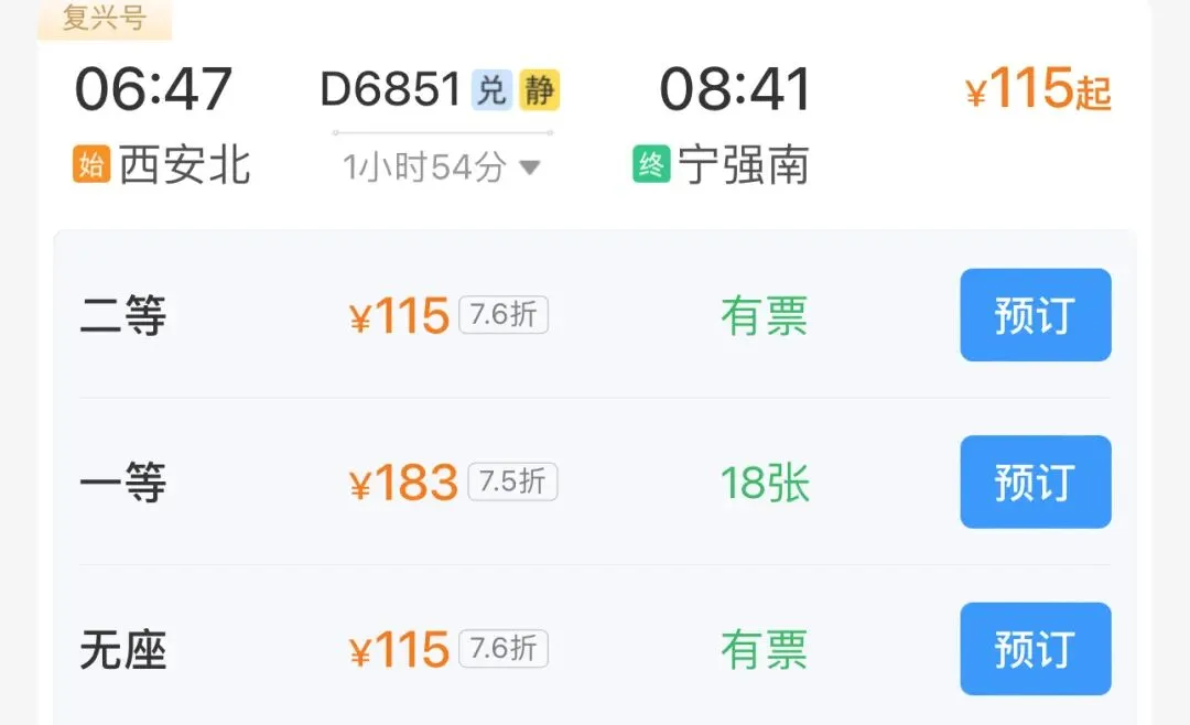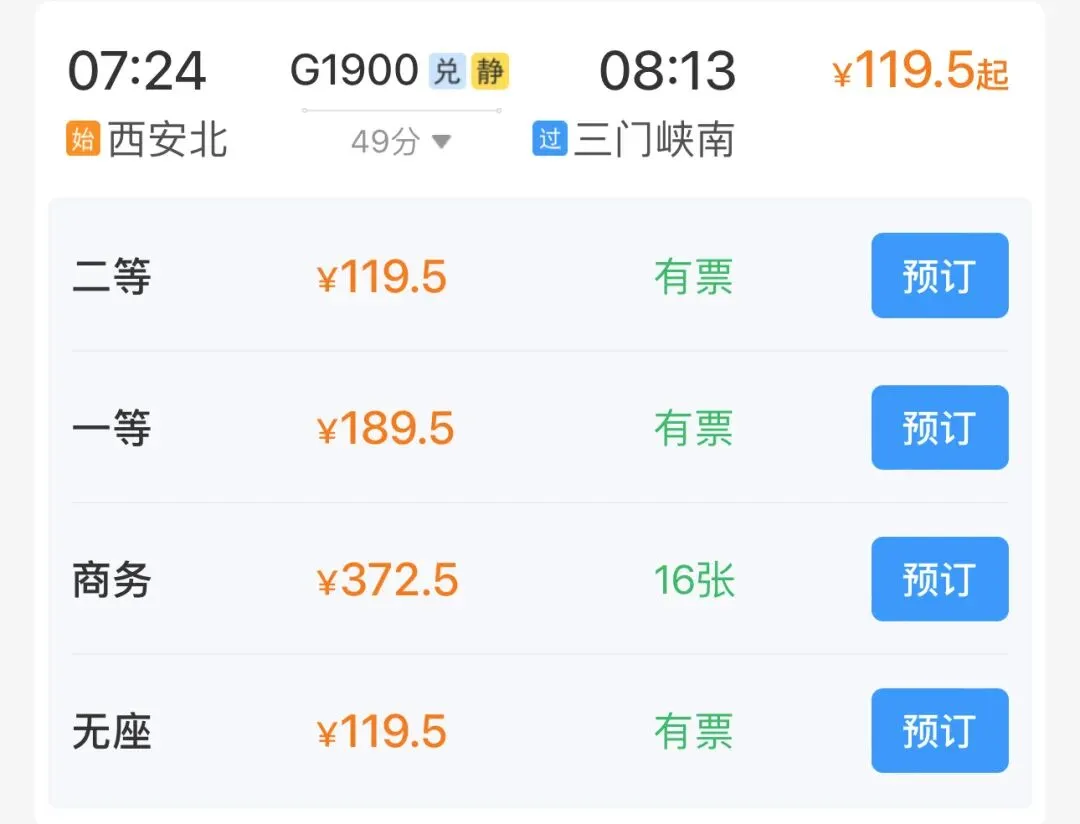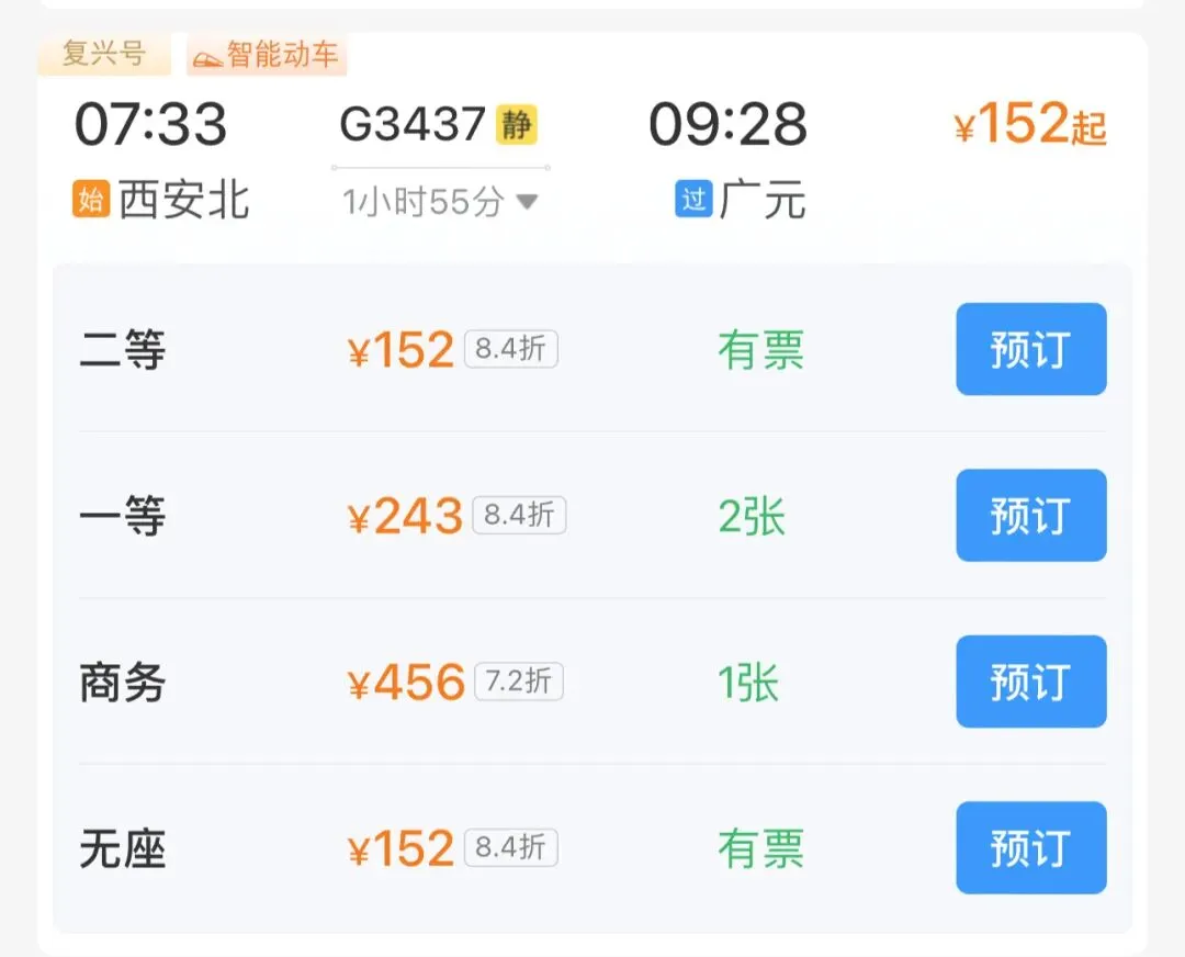 🚄高铁票:
