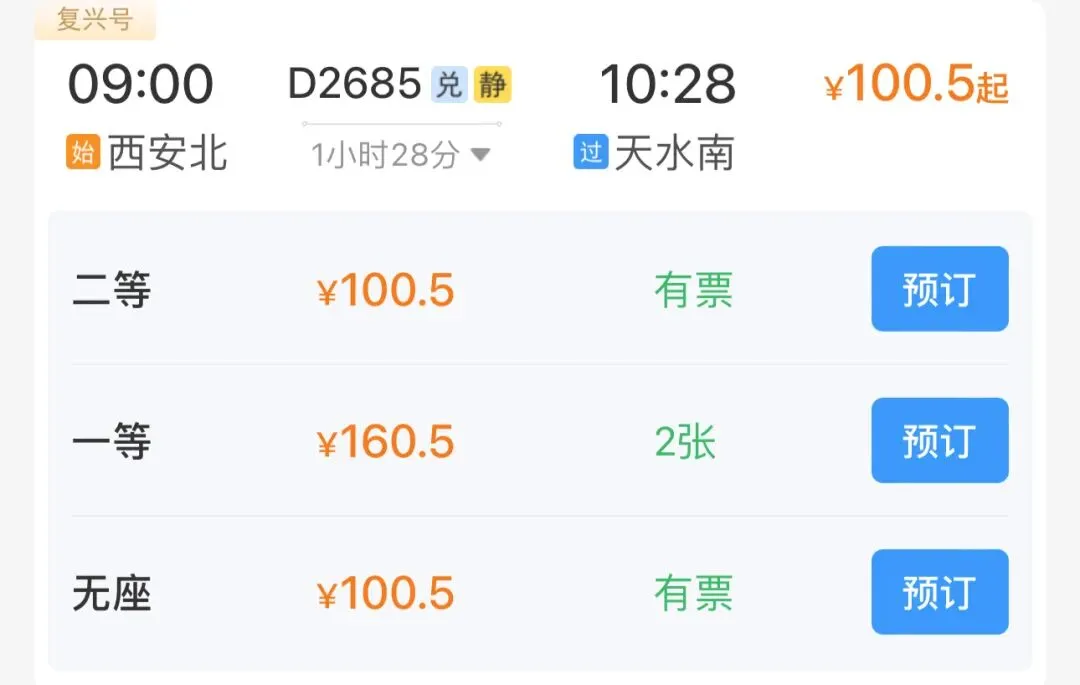 参考票价:二等座100.5元