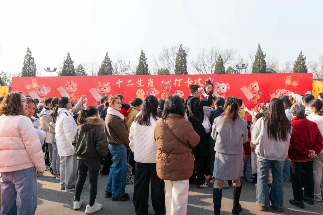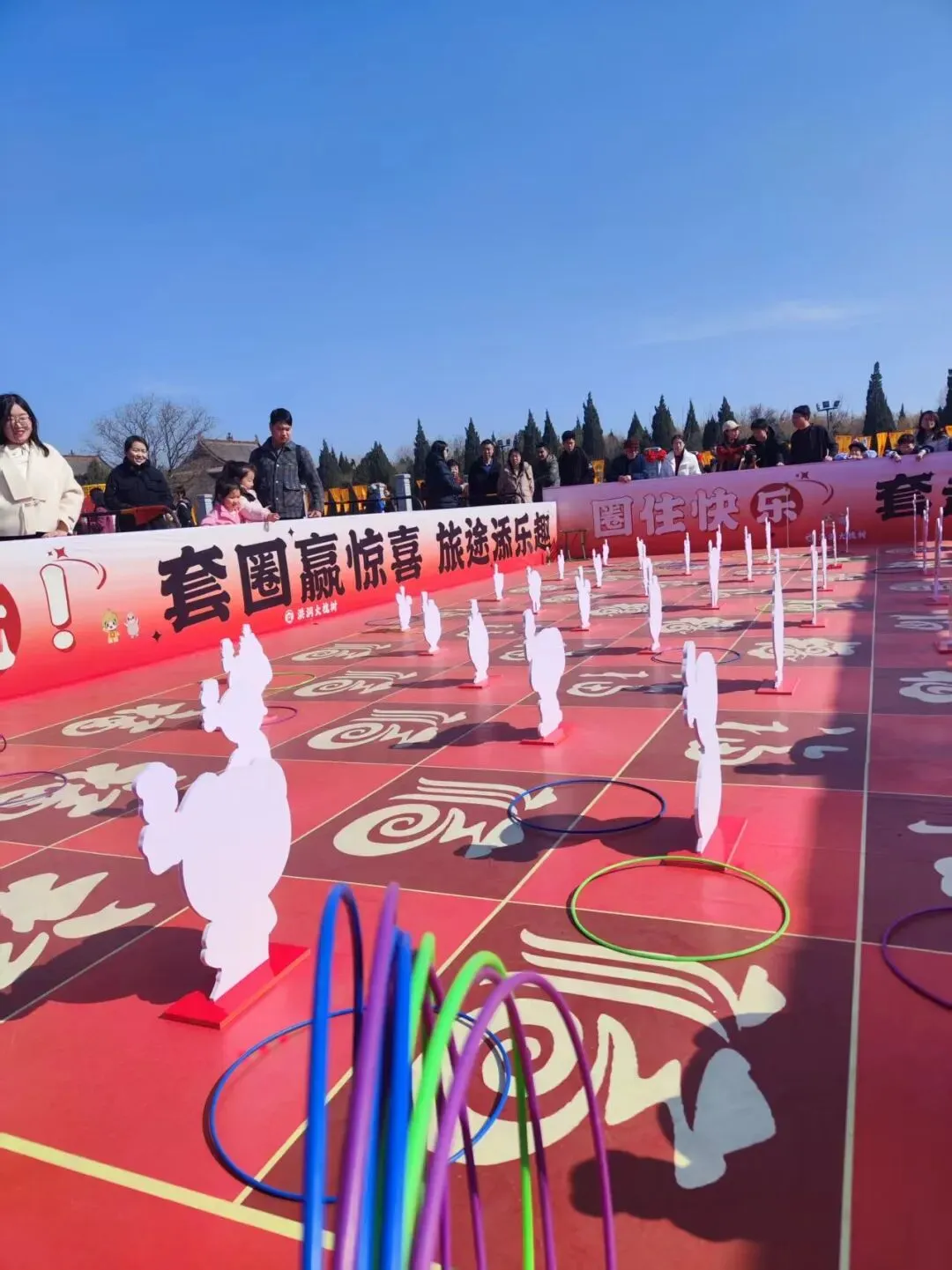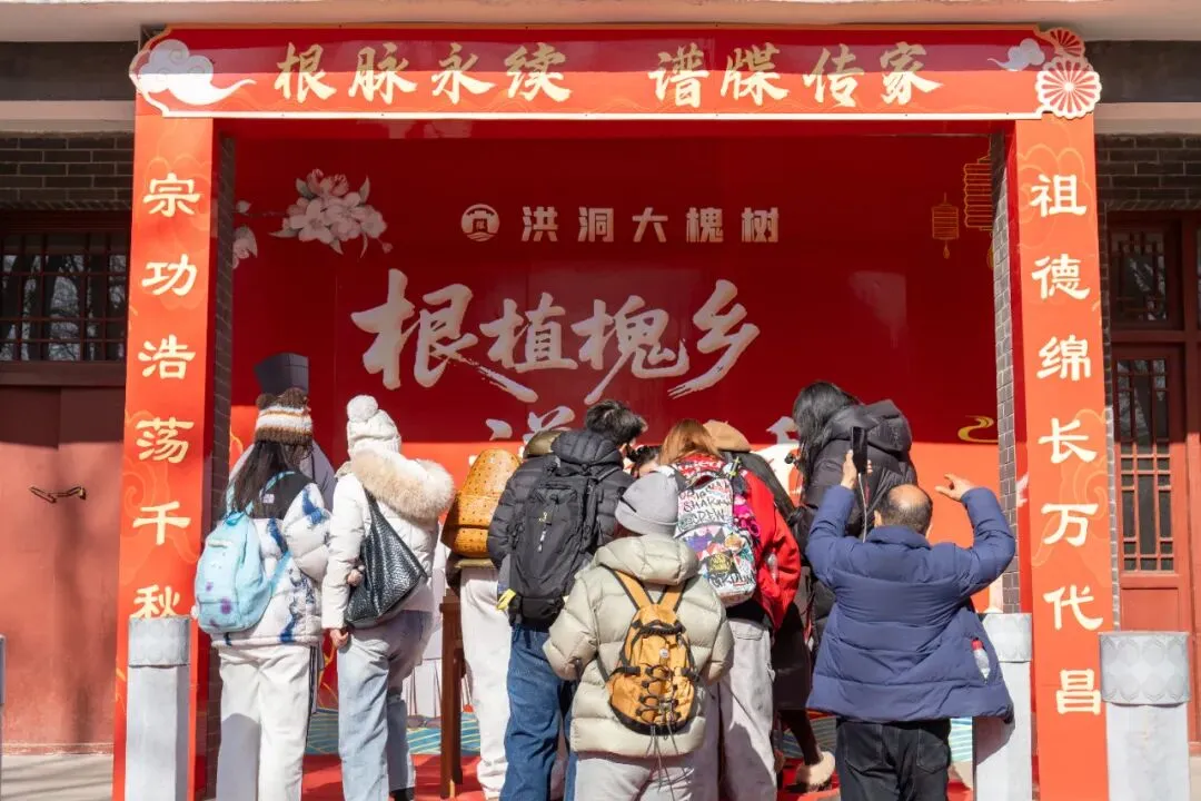 根字影壁前,游客进入景区必在此处先拍照留念。祭祖广场西侧,“十二生肖贺新岁”活动区舞台上,主持人上午10点准时开始介绍活动规则,第一关套圈挑战区,年轻的、年长的各年龄段游客踊跃挑战。又见大槐树店外,游客轻轻摇动“好运降铃”,“叮铃~”一声清脆悦耳,为新年摇来好运。全新升级的大明·槐树庄里,魁星楼、登科路,红粉蓝绿各色仿真花艺为学子铺就逐梦花路;新增的打卡点位、喜庆的婚庆院、装扮一新的打麦场,都成为游客的热门打卡地。新开街的槐树里街区,古色古香的街巷商铺间人来人往,根祖文化广场游乐设施区欢声笑语不断,满是烟火气。