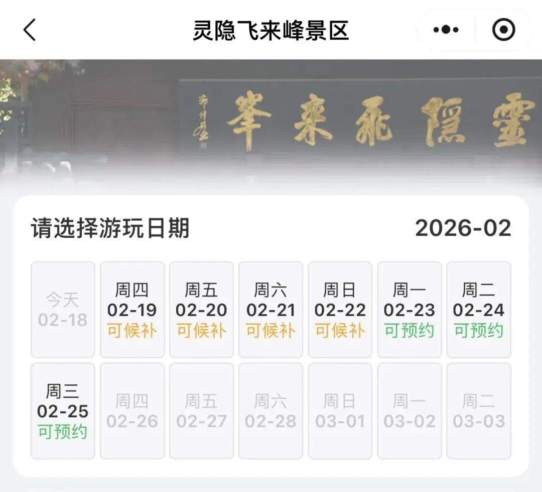 春节假期,灵隐飞来峰景区提醒:预约名额已进入候补状态