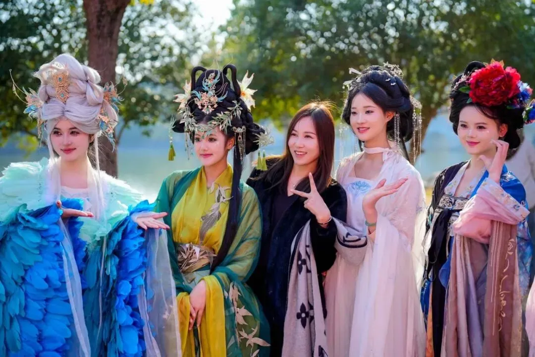 华服巡游,穿越古今:流动风景线演绎盛世风雅。游客近距离观赏华服之美,甚至与巡游队伍互动合影,瞬间“穿越”千年,沉浸式感受华夏文明的礼乐风华与人文初祖时代的庄严气象。
