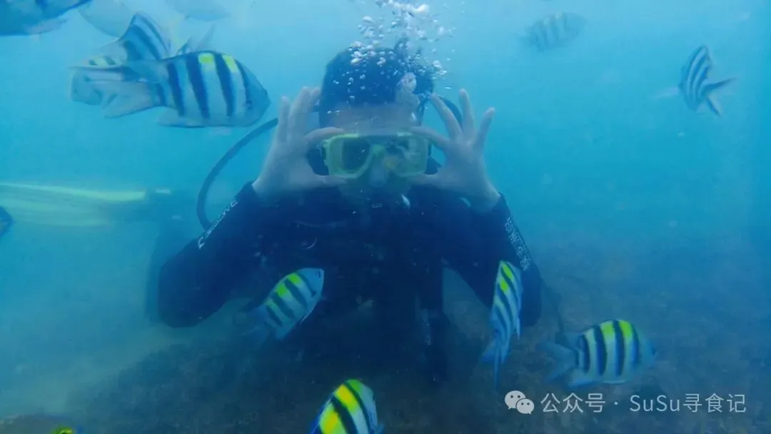 蜈支洲岛要去一次,海上拖伞和潜水要体验一次,潜水一定要去那种10米深潜,不会游泳没有关系,有教练会全程教你并且跟着,那种全世界都安静了,只可以听到自己的呼吸,在水里吐泡泡的感觉会让你毕生难忘。