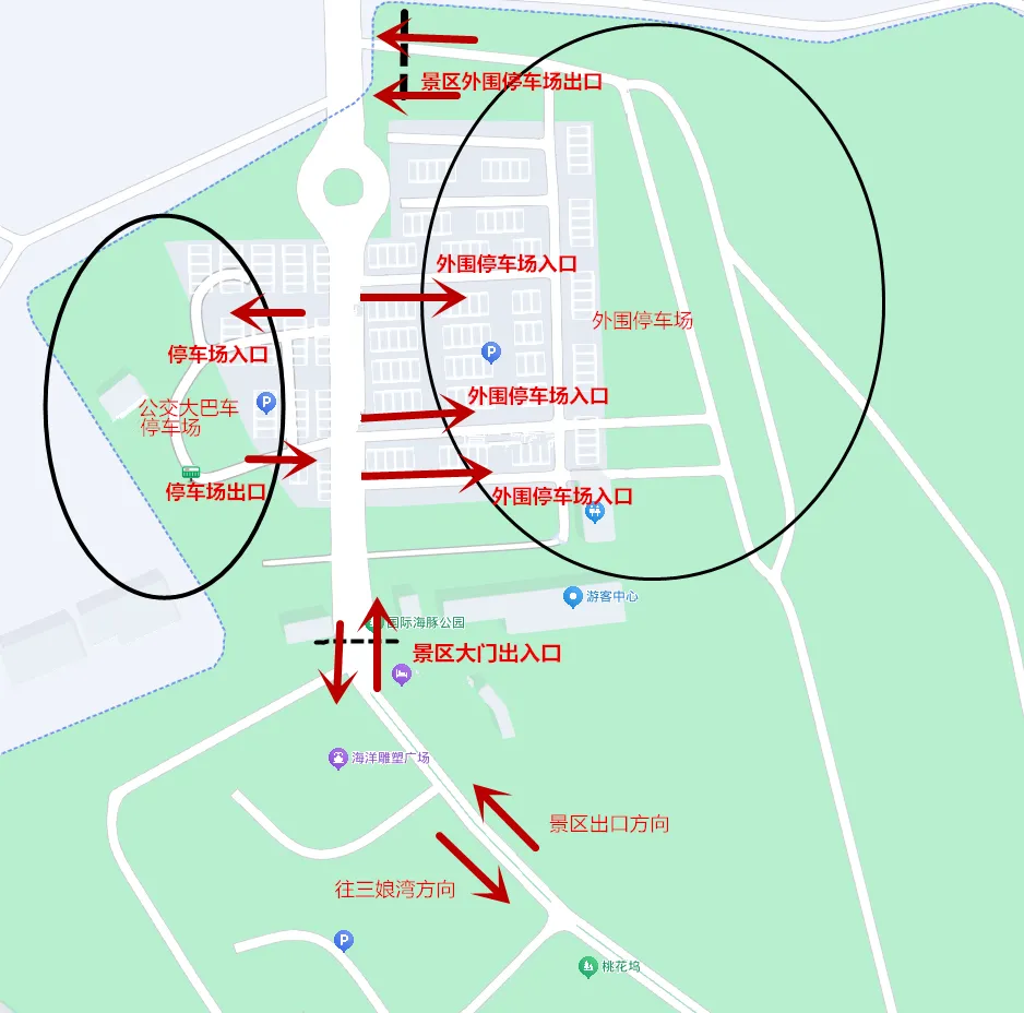 2026年2月15日至2月23日每天10:30前(具体时间视P3广场停车场、P4中心景区停车场、P5清心园停车场、P6海水浴场停车场、P7科普馆停车场车辆停放情况而定),请游客朋友们将车辆停放至P3广场停车场、P4中心景区停车场、P5清心园停车场、P6海水浴场停车场、P7科普馆停车场;2026年2月15日至2月23日每天10:30后,请游客朋友们将车辆停放到景区外围P1景区大门停车场、P2景区大门停车场;已预订度假区内民宿或想入园接家人、朋友的游客,请在18:00(具体时间视园内车流情况而定)后再将车辆驶入度假区,执行紧急任务的警车、消防车、救护车等除外。