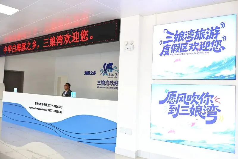 度假区大门口处的游客服务中心售票处春节期间启用,为大家提供“出海寻豚”船票、观光车票售卖及咨询等服务,请大家有序排队、文明购票,自觉维护现场秩序。