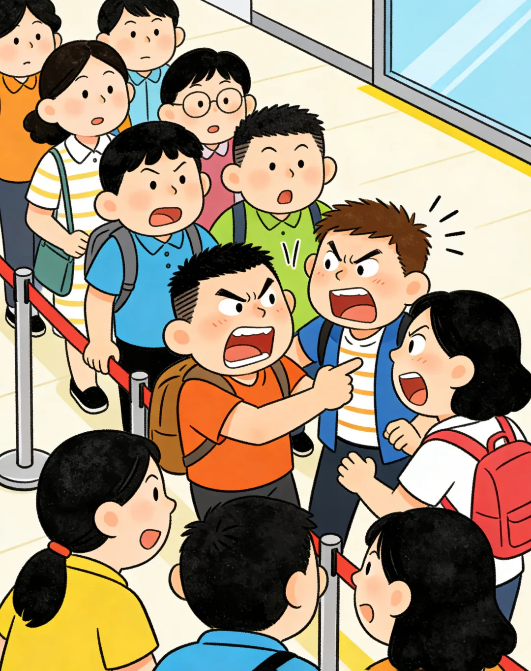 插队喧哗,扰乱打卡秩序