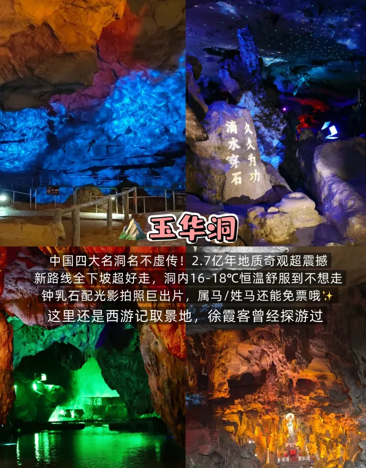 中国四大名洞之一,2.7亿年地质奇观震撼人心!新路线全程下坡,轻松好走;洞内恒温16-18℃,凉爽舒适,光影交错的钟乳石拍照超有氛围感。属马或姓马的游客凭身份证可免门票哦~