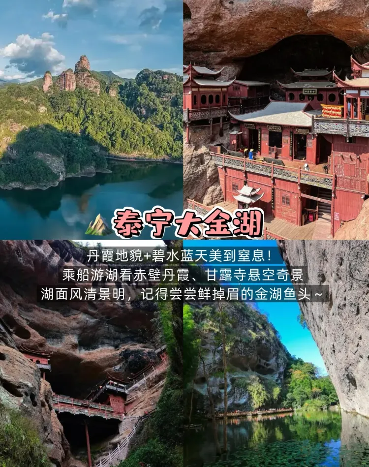 丹霞碧水,美到窒息!乘船游湖,赤壁丹霞与甘露寺悬空奇景尽收眼底,湖面风清景明,随手一拍就是壁纸级画面。别忘了尝尝鲜美的金湖鱼头汤~
