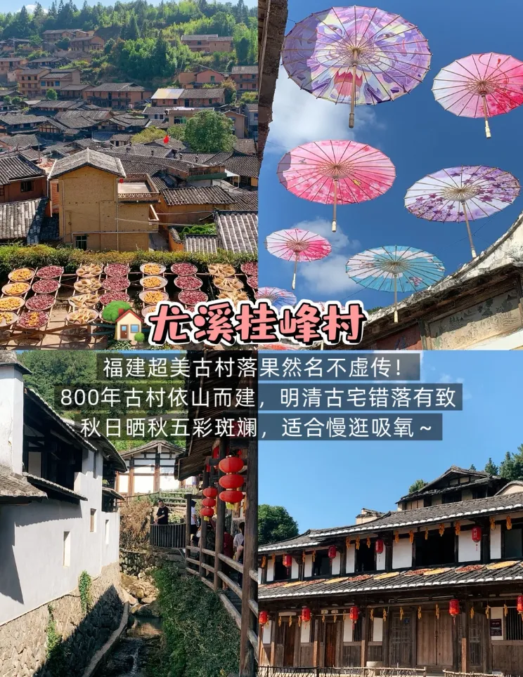 福建最美古村落名不虚传!800年历史的古村依山而建,青石板路蜿蜒,明清古宅错落有致。秋日晒秋五彩斑斓,石印桥拍照氛围感拉满,适合慢逛吸氧,感受宁静时光~