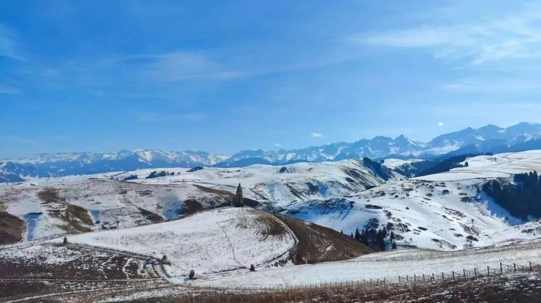 欣赏冬日天山北麓的辽阔雪原