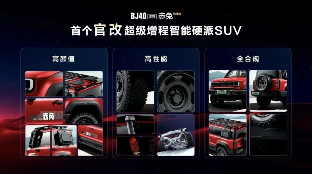 当 BJ30旅行家 为家庭出行带来 “空间自由” 时,它的伙伴 BJ40 增程赤兔版,则在越野领域续写传奇。2026 马年,“赤兔” 之名自带好彩头,开上这台 “赤兔红”,不仅颜值炸街,更寓意 “马年开赤兔,财运挡不住”!它可是把改装店搬进了生产线,出厂就配备专属拉花、扩充轮眉、铝合金爬梯、高进气涉水喉、氮气减震等 16 项升级装备,全部经过工信部备案,合法合规,让你 “坦荡地野”,不用再担心改装的法规风险。