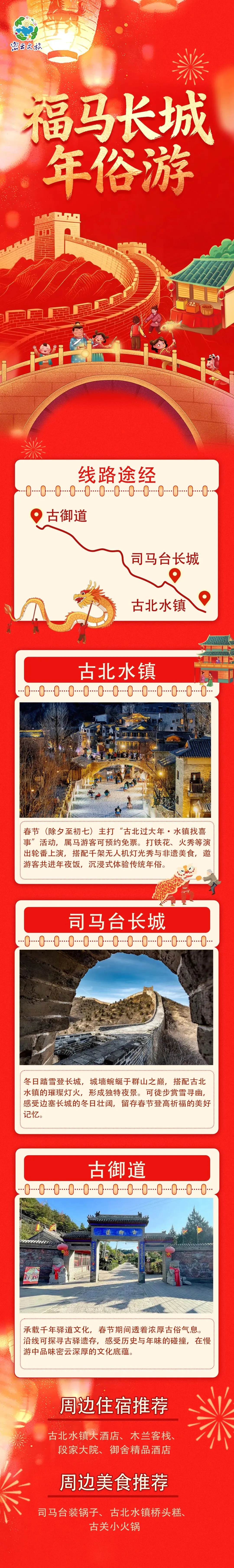 您现在的位置是:首页 > 旅游攻略 > 正文 旅游攻略 来密云过大年!三条密云新春特色旅游线路,解锁京郊年味新玩法 admin2026年02月19日 12:54:43旅游攻略11 来密云过大年!三条密云新春特色旅游线路,解锁京郊年味新玩法点击即刻畅游密云,乐享无忧之旅!进入“惠玩密云”微信小程序↓↓↓《戏雪看海庆团圆,乐游密云过福年!这份超全新春游玩攻略,带你玩转“最有味”的密云年!》《古北水镇产品焕新,体验升级!2月1日起,新春特惠套票惊喜上线!》 转载请说明来源于"旅荐网",部分内容转载自网络,如有侵权请联系qlwl@foxmail.com删除 本文地址:https://www.15386.cn/post/114268.html 上一篇 春节假期带上“文明”去旅游,让旅途更精彩! 下一篇 中年以后的自由:穿好看的衣服满世界旅游拍照��. 相关文章 馆陶旅游全攻略|邂逅千年古县,赴一场运河烟火与田园诗意之约 广州周末游 白云山旅游攻略 内蒙古包头旅游必去十大景点游玩攻略,2026年3月玩转鹿城!包头十大必去景区,五大苍蝇馆子,钢铁城市里的诗与远方!推荐收藏游玩 呼和浩特 3 日游,不费腿保姆级游玩攻略 荆州古城 3 日游,不费腿保姆级游玩攻略 青岛海滨 3 日游,不费腿保姆级游玩攻略 柳州城区 3 日游,不费腿保姆级游玩攻略 珠海人周末冲澳门!懒人版游玩攻略,逛吃打卡一站式搞定,还有惊喜福利拿 四川成都三天两晚 · 旅游攻略 三亚旅游攻略|去三亚怎么玩最省心?选海南独角兽旅行社,纯玩无坑(附官方联系方式) 发表评论 取消回复 评论列表 这篇文章还没有收到评论,赶紧来抢沙发吧~