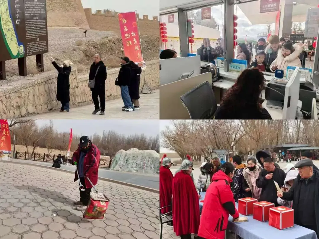 春节期间,关城景区职工坚守岗位,以热情周到的服务迎接八方来客。从活动引导到游览咨询,从秩序维护到环境保障,每一处细节都倾注着工作人员的用心,他们用微笑传递新春祝福,用行动守护浓浓年味,让游客在雄关脚下感受到家一般的温暖与舒心。正是这份默默坚守与真诚付出,为关城新春增添了别样的温情与感动。