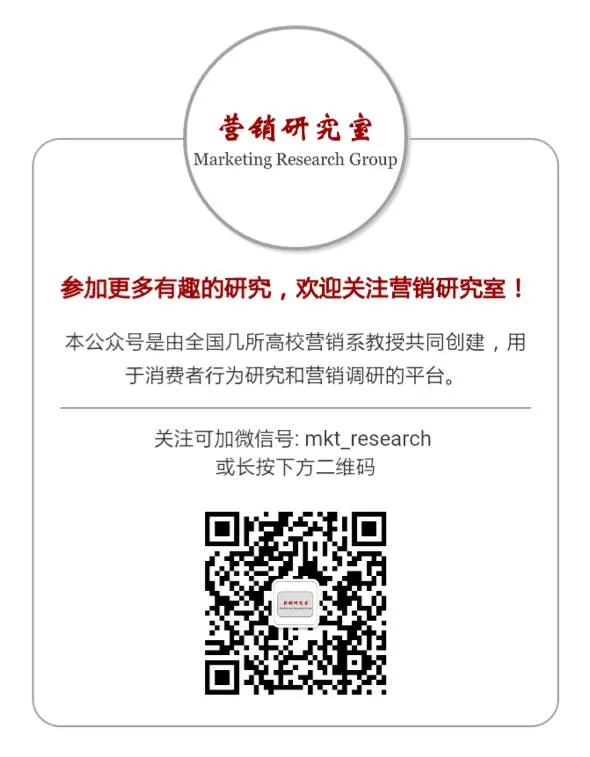 这里是营销研究室。本公众号是由全国几所高校营销系教授共同创建,用于消费者行为研究和营销调研的平台。十分感谢您的关注和参与!