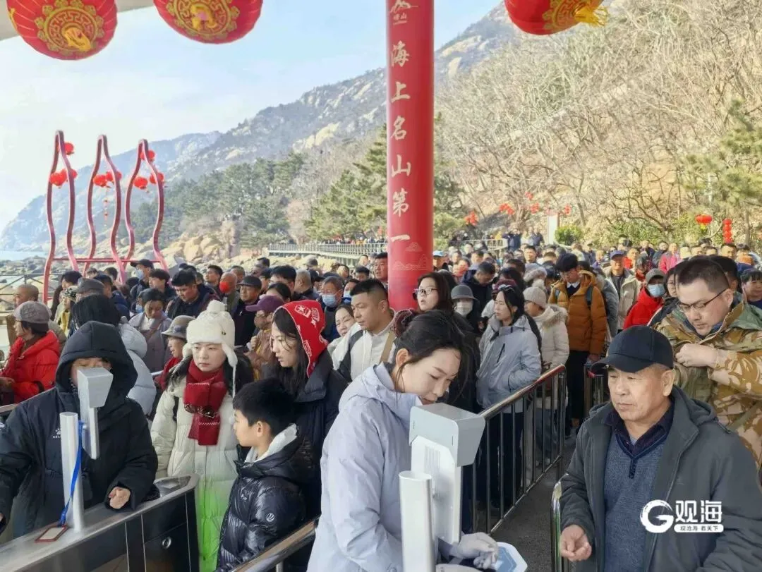 检票口前,游客们有序排队,脸上挂着新春的笑意,步履轻快地奔赴山海之约;山间步道上,扶老携幼、三五成群,大家一边欣赏崂山冬日的清隽与灵动,一边畅谈新年心愿,随手拍下与山海、年味的同框瞬间。