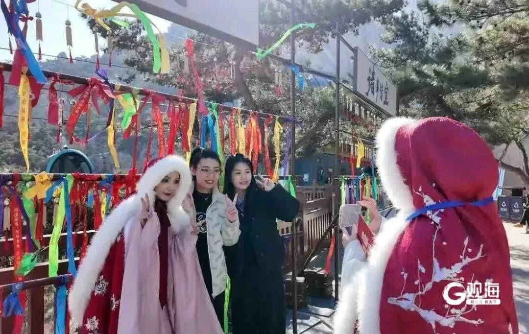 新年伊始,山海间的新春序幕正式拉开,众多市民游客携家带口,踏春登山、赏民俗、祈安康,太清游览区各入口、游览路线、活动现场处处人头攒动,欢声笑语不绝于耳,每一处角落都洋溢着团圆喜庆的新年气息。初一至初三,太清宫实施免门票政策,游客络绎不绝。
