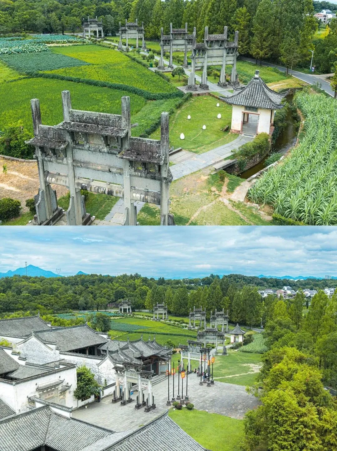 牌坊群鲍家花园是与苏州拙政园、无锡蠡园齐名的江南私家名园,是徽派园林与盆景艺术的集中展示地。七座石牌坊呈半弧形排列,彰显“忠孝节义”的礼制文化。景区设有《棠樾往事》沉浸剧场,可与NPC互动参与剧情、赚取“棠樾银票”。