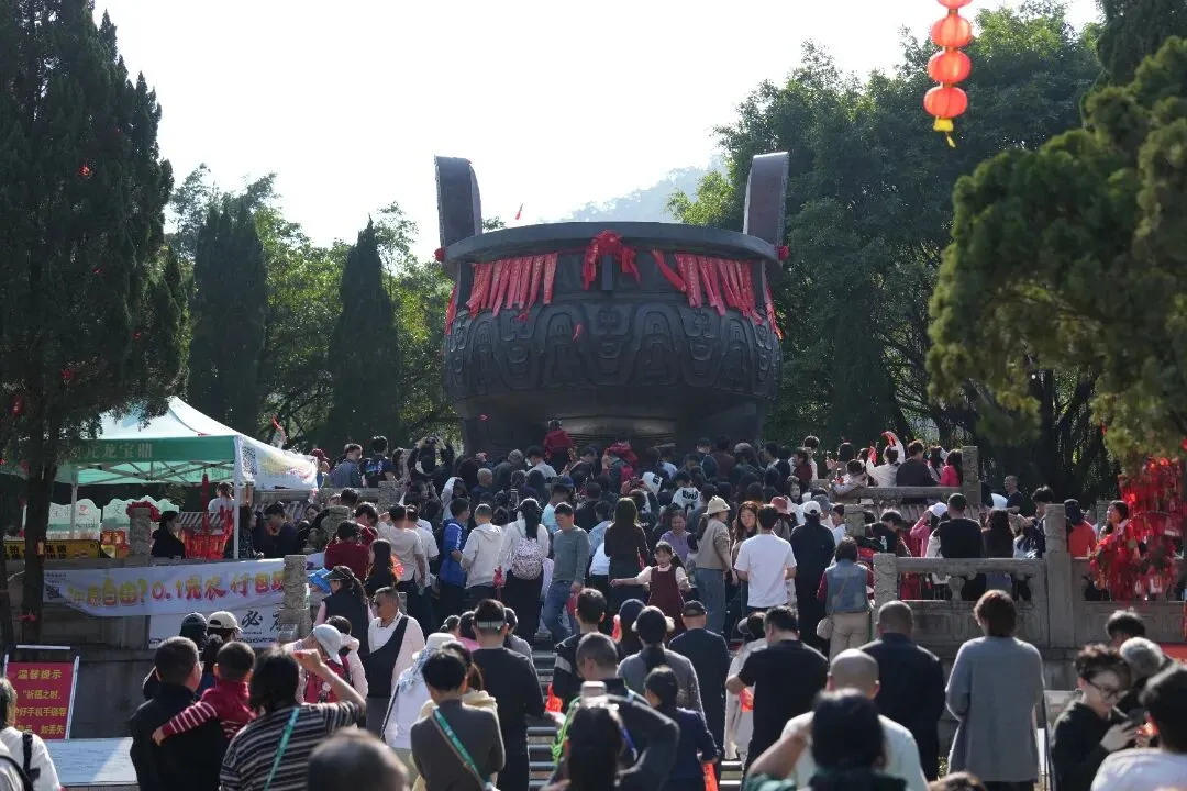 宝鼎园九龙宝鼎前更是人头攒动,