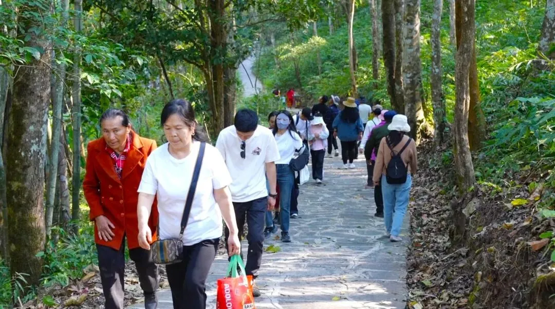 清晨,勐梭龙潭景区早已游人如织。清澈如镜的潭水倒映着葱茏青山,蜿蜒的栈道上,游客们或缓步慢行,或驻足拍照,尽情享受天然氧吧的静谧与清新。深入景区腹地的“龙摩爷”圣地,庄严肃穆的氛围吸引众多游客前来参与佤族传统祈福仪式。在“万物有灵”的信仰感召下,大家虔诚祈愿,将新年的美好祝福寄予这片神秘的土地。