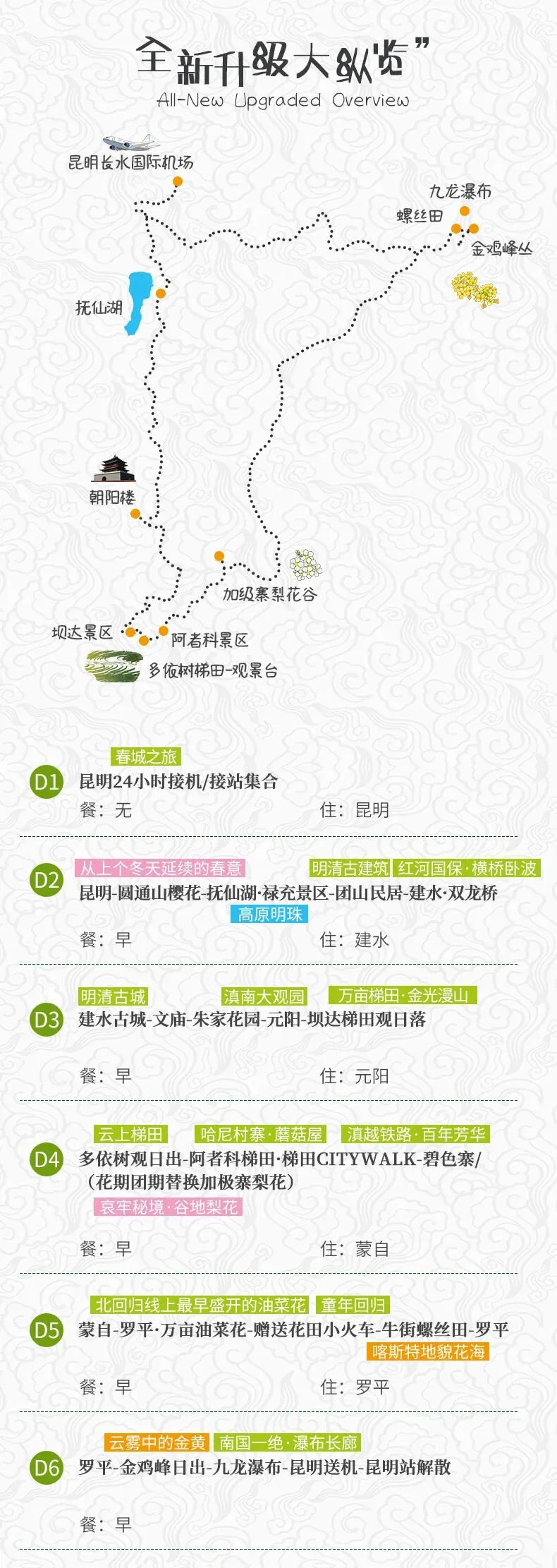 滇东南旅游 II 千山花海·云南春日|6天5晚2-12人 | 金色油菜/粉色冬樱/洁白梨花,昆明+建水古城+罗平油菜+蒙自+抚仙湖+九龙(非自驾)