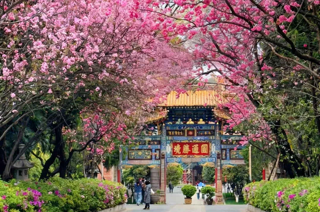 09:00 抵达【圆通山樱花】,每年初春,一场盛大的“粉色风暴”便会如期席卷圆通山。 数千株云南樱花与垂丝海棠沿山势竞相怒放,将整片山野渲染成一片如梦似幻的绯云。花潮之下,游人如织,踏青赏春的欢愉与漫天飞舞的花瓣共同酿造出昆明城中最具生命力的春日盛宴,短暂而绚烂。