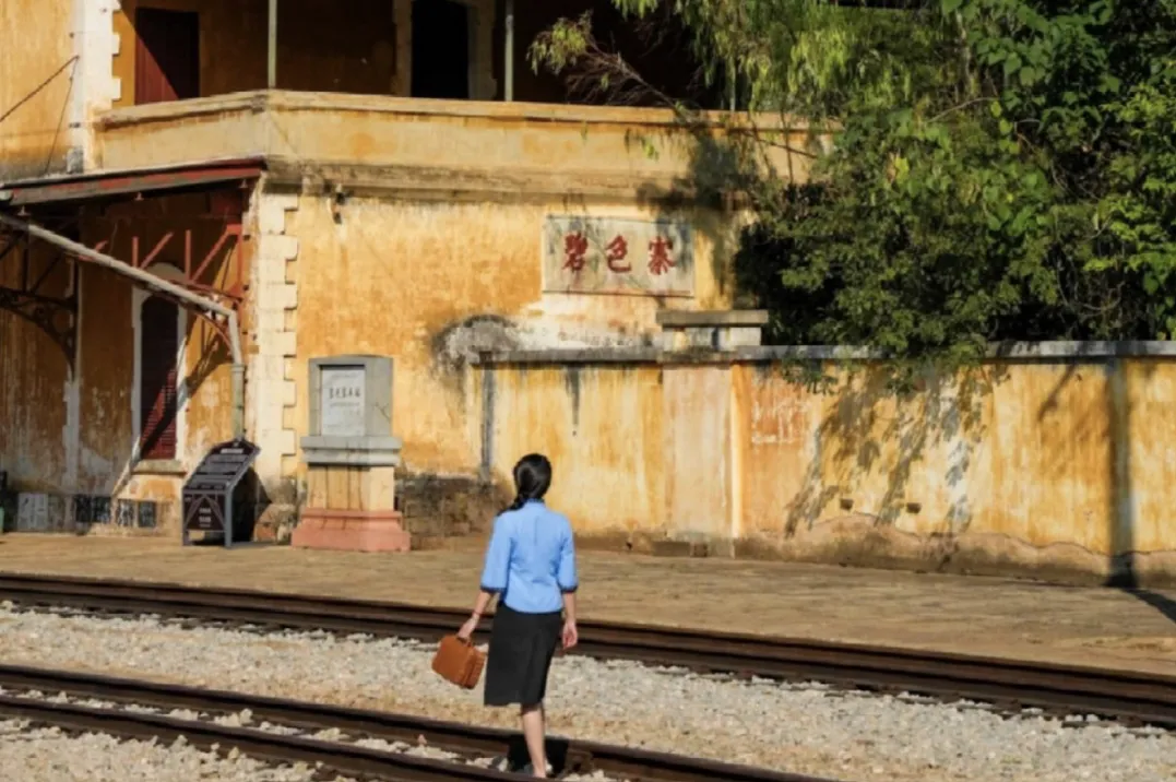 14:30到达【碧色寨·滇越铁路】,法式站房鹅黄墙面剥落如癣,【三面钟】锈针卡在1910。踩上米轨的瞬间,红土从枕木裂缝涌出,中国第一块【红土网球场】浮现而来。候车廊孔雀蓝木窗忽被撞开——百年未发的列车,正载着野象群冲进站长室的镜中。【芳华】拍摄的痕迹仍在其中,【滇越铁路】货运列车仍穿梭在【北回归线纪念碑】旁。