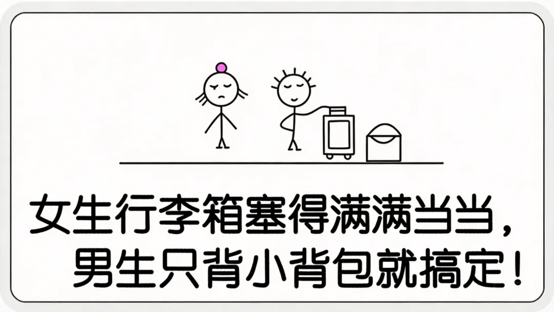 旅游时,看女生行李满满;男生背包简单,