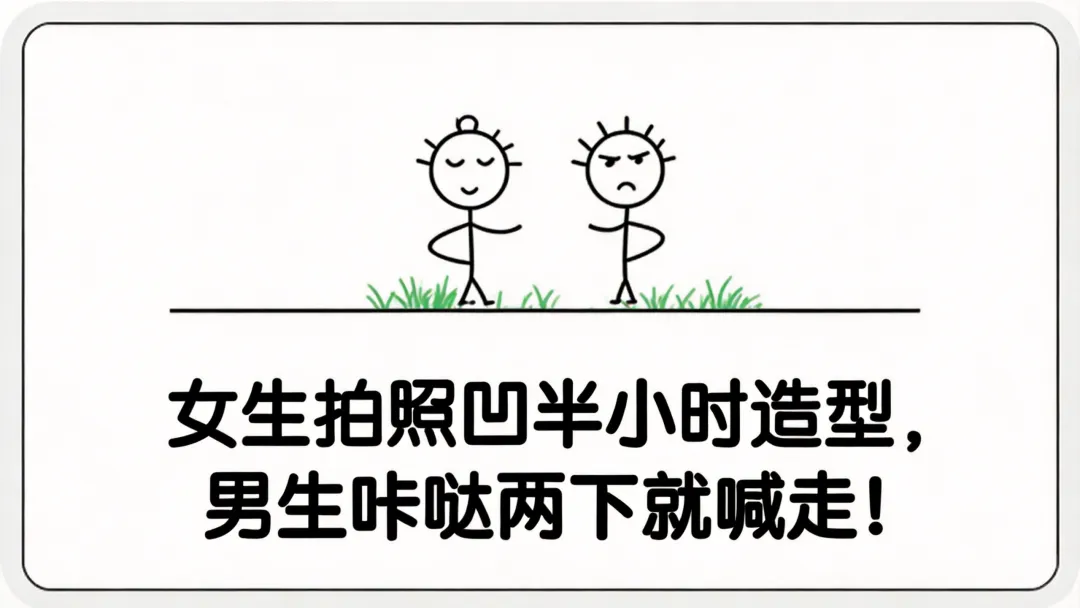 看女生拍照磨蹭,男生速战速决;