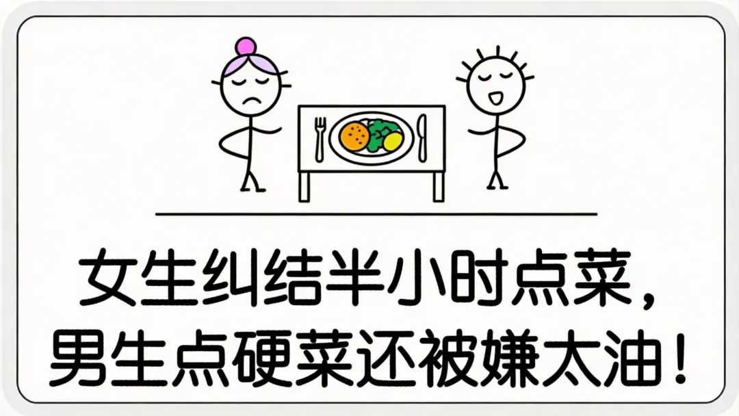 看女生纠结吃啥,男生点菜上菜;