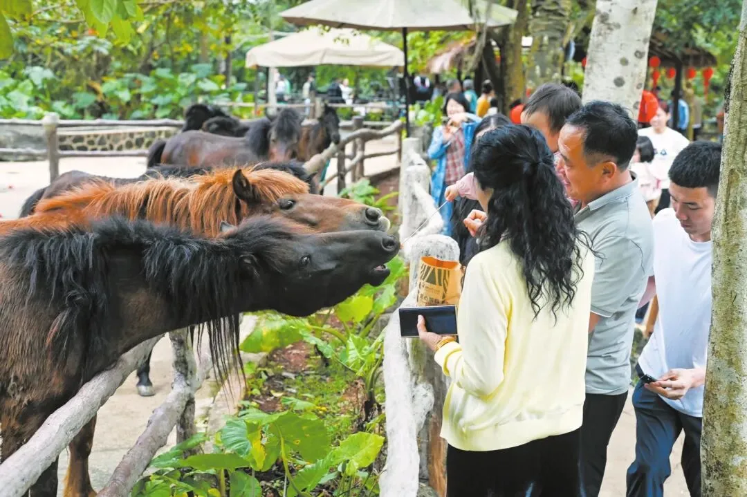 海南热带野生动植物园里,“海野迎新春萌马陪您过大年”主题活动吸引了众多亲子家庭前来参与。科普课堂上,孩子们认真聆听关于马的科普知识。广东游客刘浩带着女儿正在喂长颈鹿,他说:“孩子特别喜欢动物,这次来海口,特意把海南热带野生动植物园列入行程,可以近距离接触萌宠,还能学到科普知识,收获满满。”
