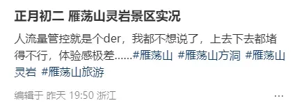 正月里温州雁荡山火是火了,却也被游客花式吐槽到爆。