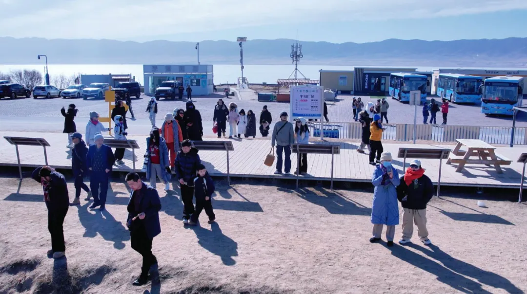 2026年马年春节假期,青海湖景区年味浓郁、游人如织,迎来新春文旅开门红。冬季封湖后的青海湖尽显千里冰川雪原的壮阔盛景,湛蓝冰面与皑皑雪原交相辉映;景区码头水域湟鱼群悠然游弋,成为生态保护成效的生动展现。蓝冰奇观与冰雪游乐相映成趣,景区人气持续火爆,冬季旅游“热经济”效应全面凸显。