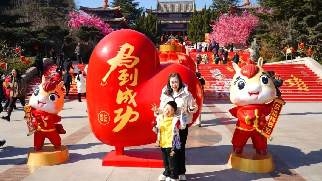 始皇庙、天尽头广场年味爆表,打卡点位前挤满了拍照的游客,九宫格根本装不下这份红火!