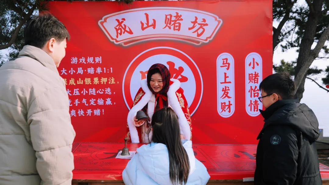 这个春节,成山头景区开启了一场别开生面的狂欢,拥挤的人潮不是简单的看景祈福,而是开启了一场沉浸式的“古代穿越剧”,手握银票,闯荡江湖,在绝技与欢笑中,把福气实实在在赚到手。
