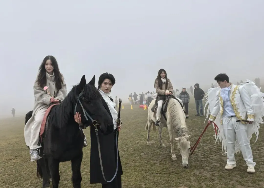 农历大年初二,仙女山大草原人气十足。朦胧的雾气虽在一定程度上影响了游客们观光赏景,但景区在大草原各处设置了新春打卡点,准备了内容丰富的趣味互动游戏,新春氛围感十足。双面童话奇遇记中白马王子、黑马骑士NPC可让玩家尽情体验“王子与公主”的浪漫;萌娃专属童趣区,“充气跳跳马”你追我赶,欢声笑语不断;毛毛虫竞速游戏则让大人们在比拼中重拾童趣。