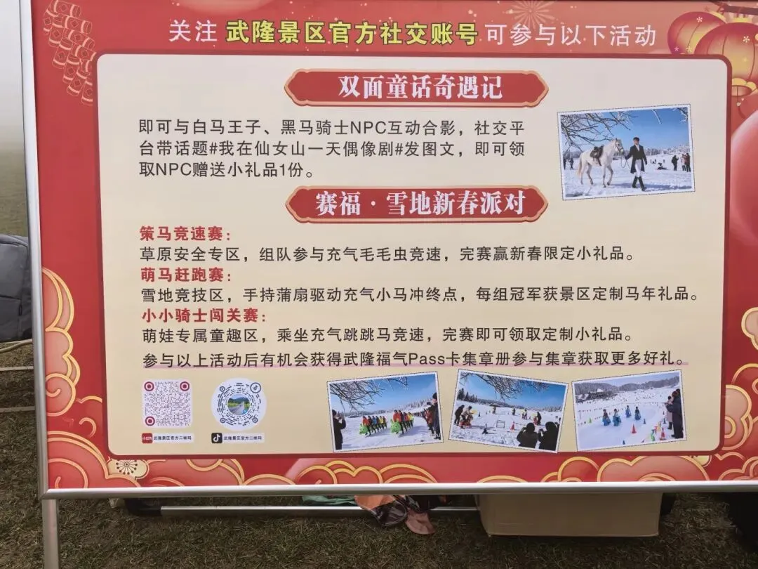 据了解,依托世界级自然景观与人文底蕴,春节期间,我区围绕“马上趣武隆 新春乐融融”活动主题,在仙女山、天生三桥、龙水峡地缝、芙蓉洞、白马山景区策划推出一系列富含马年元素、凸显烟火年味、美好祝愿的覆盖全龄客群的沉浸式互动活动,热闹祥和的新春氛围里,既让游客感受到传统文化的魅力,也带动了本地消费市场升温。
