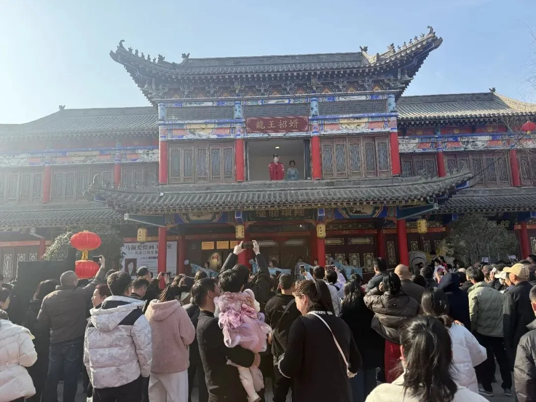 《潼关月-龙王招婿》一开幕,古渡口景区年味直接拉满,趣味互动,游客现场参与其中,沉浸式体验民俗传说的魅力。